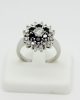 טבעת יהלומים מרשימה בסגנון פרח בשילוב יהלומים לבנים ושחורים